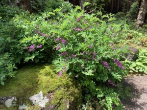 今日から6月、和服は裏の付いている袷から裏の無い単衣に、小物も夏の透かしのある絽の帯揚げと細目の帯揚げになります。気分は初夏ですが、飛騨はまだ寒く囲炉裏に火をつけました。そんな中、6月を待ち望んでいたかのように夏ハギが咲き始めました。草木は偉いですね。