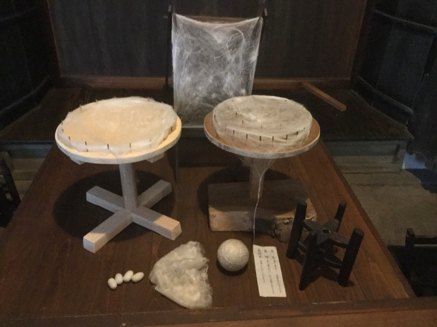繭4粒で1枚の真綿ができますが、それを紡ぎ台を使って紡いでゆきます。