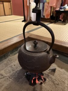 今朝は6℃。最高温度が先週の最低温度15℃の冷え込む日となりました。囲炉裏に初火入れしました。炭の温かさがまわりを包みます。ほっと一服。