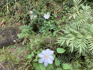 秋を感じる頃になりましたが、初夏に咲くクレマチスが突然咲きました。側には紅葉しはじめた葉ときのこ、おかしな共演。この季節には伸びないはずの雑草が伸び、蚊も出てきました。自然界を狂わせたのは?