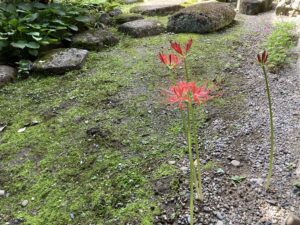 暦は昨日から10月を迎えました。なかなか咲かなかった彼岸花がようやく花開きました。お彼岸をとうに過ぎての開花、今夏が暑すぎたせいかもしれません。毎年咲く場所が異なる不思議な花です。