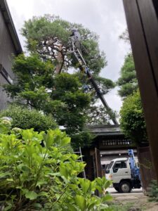 夏の庭木の剪定が始まりました。自由気ままに伸びている木々、主に似るのかもしれませんネ。これからスッキリします。