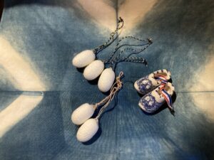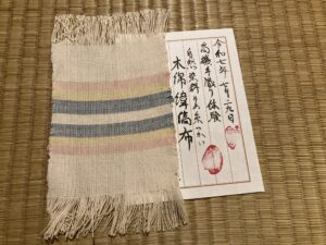 午後にいらしたオランダの5人家族、3人の息子さんは身長が2m程、ご家族の仲のよい様子が仕草から伝わってきました。作品と共に庭を美しいと褒めて下さり、亡父が愛した思い出の庭と話すと更に喜ばれました。3人がそれぞれ詩織を、お母様はコースターをお求め頂きました。機織り場にご案内して説明すると150年前の織機などを興味深げにご覧になり。帰り際にお母様がプレゼントと言って姫靴を下さりびっくり、嬉しくて福まゆを皆さんに差し上げました。心が丸くなったひと時、世界はひとつ、「美」で平和に!